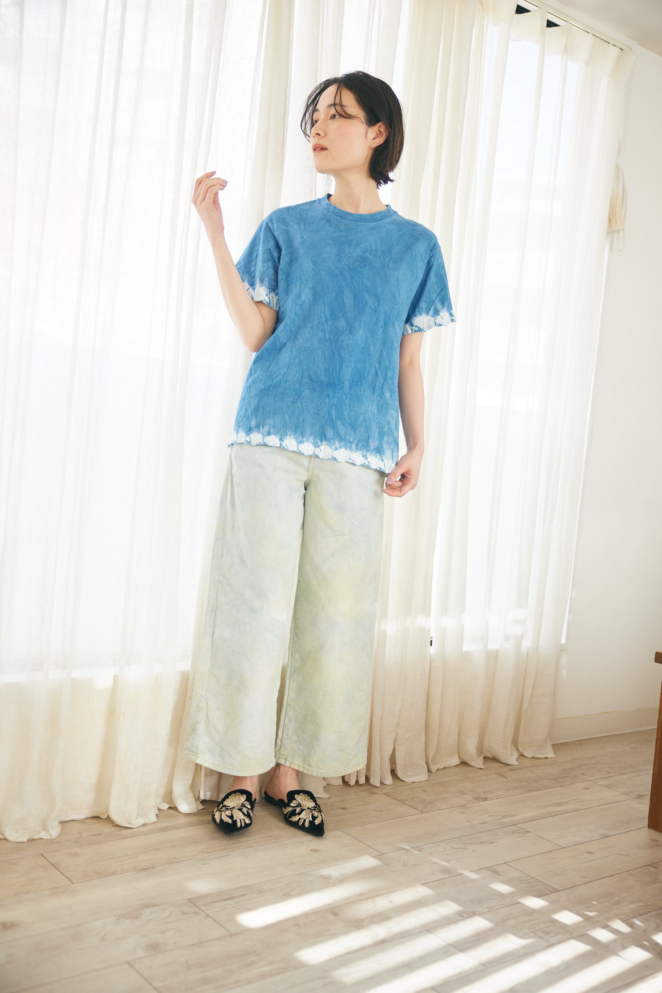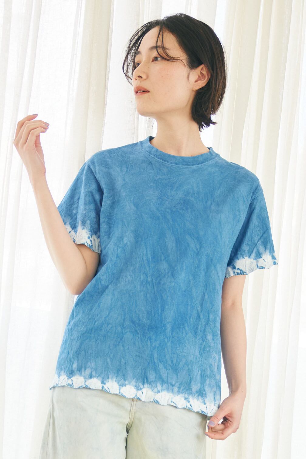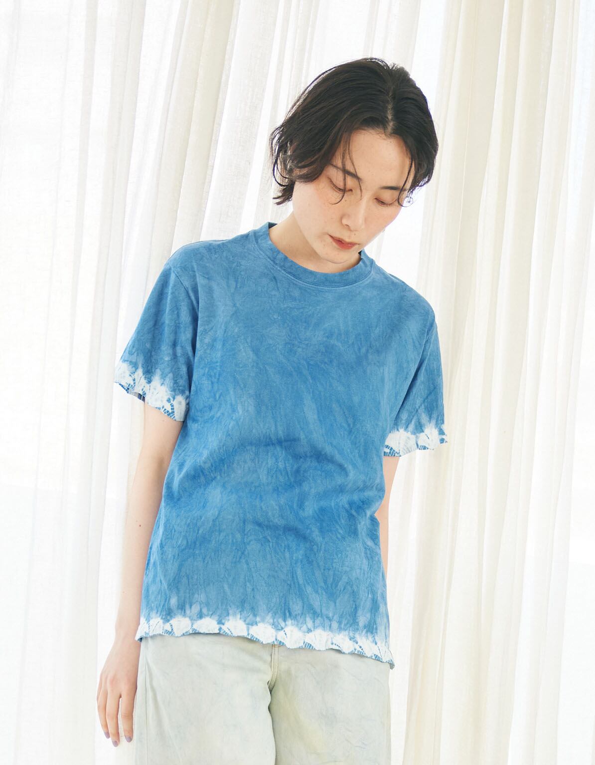 スソ手蜘蛛絞り藍染めオーガニックコットンTシャツ