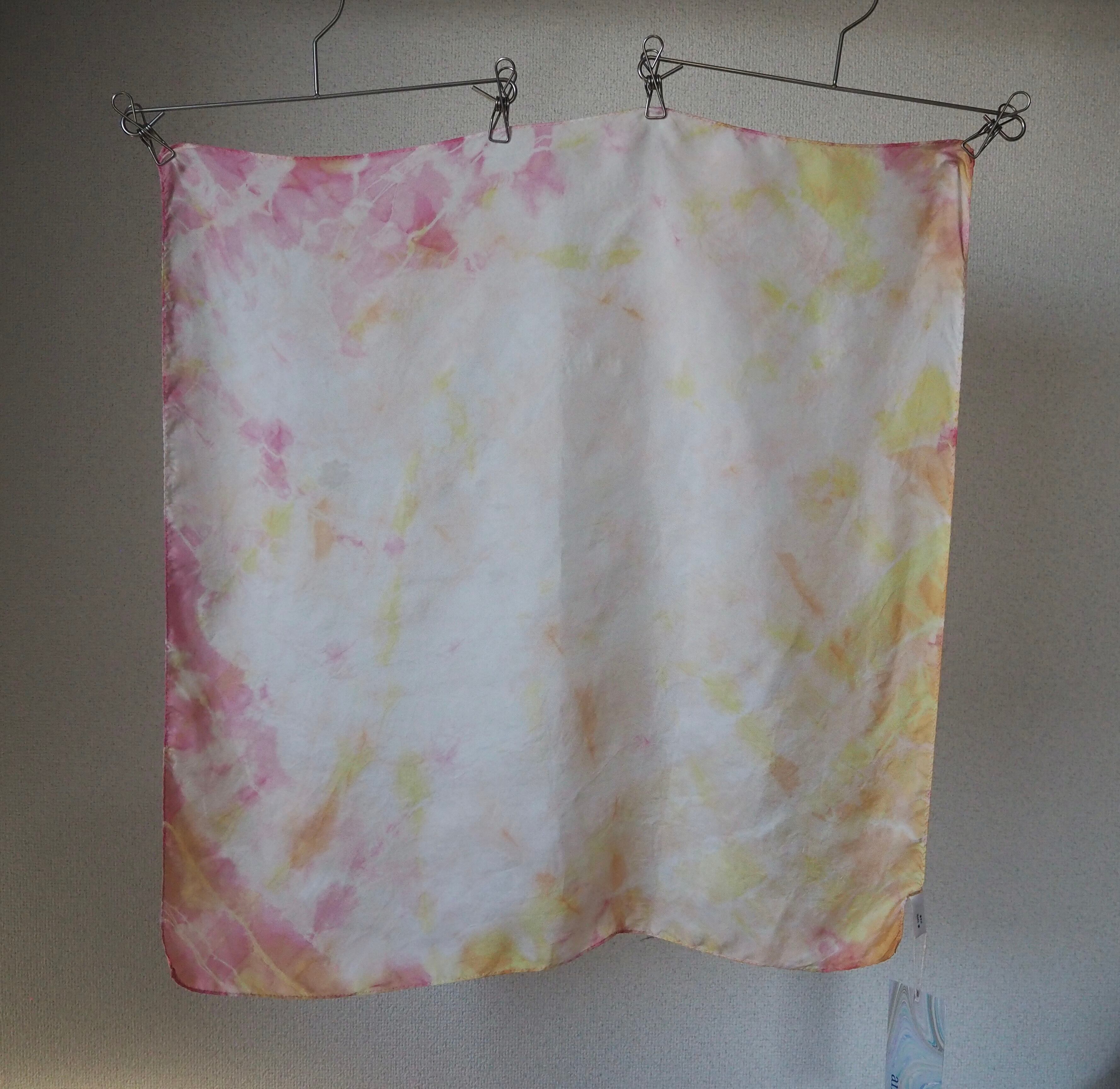 コチニールとかりやすと西洋茜染めのシルクスカーフ60cm