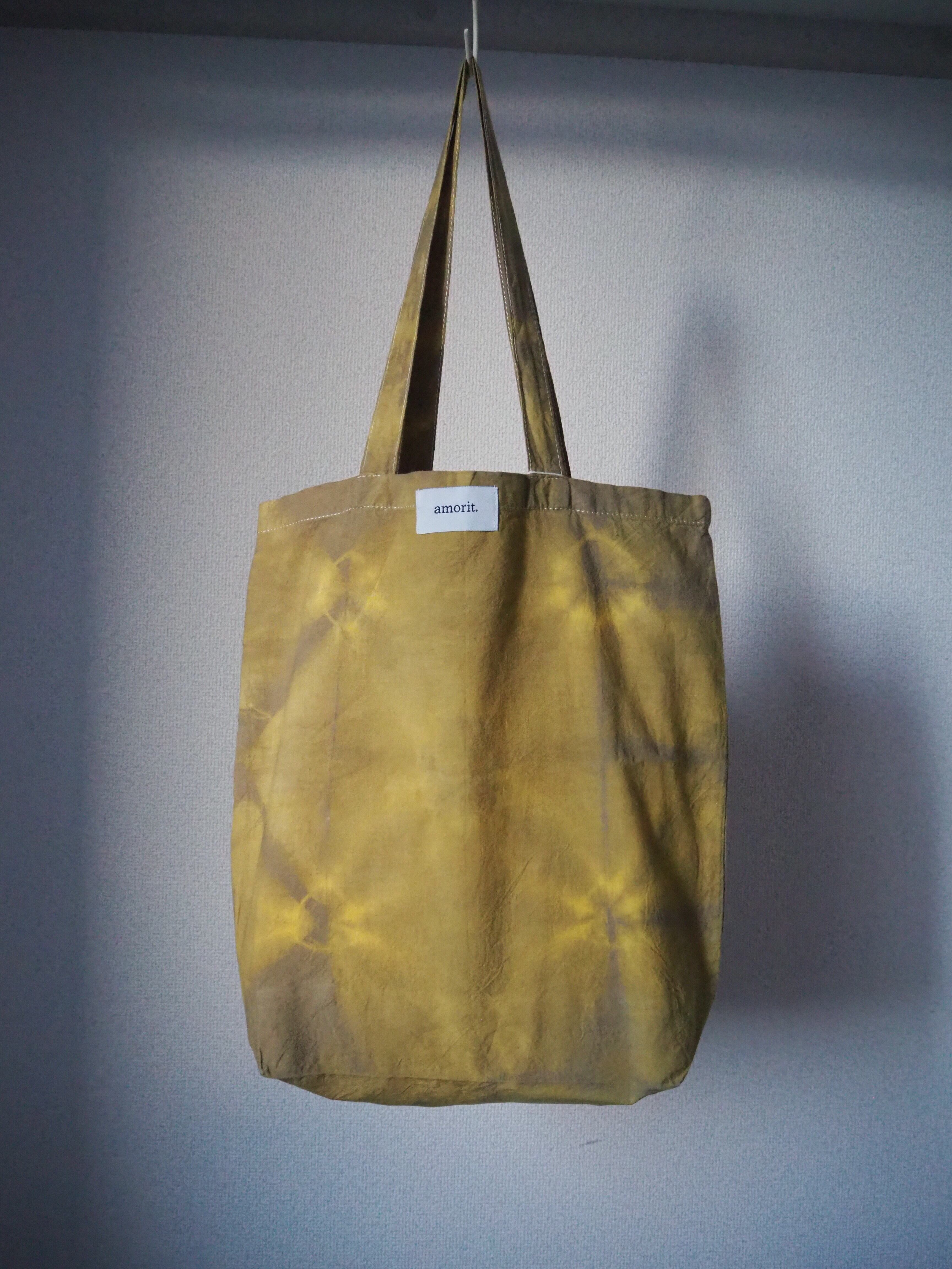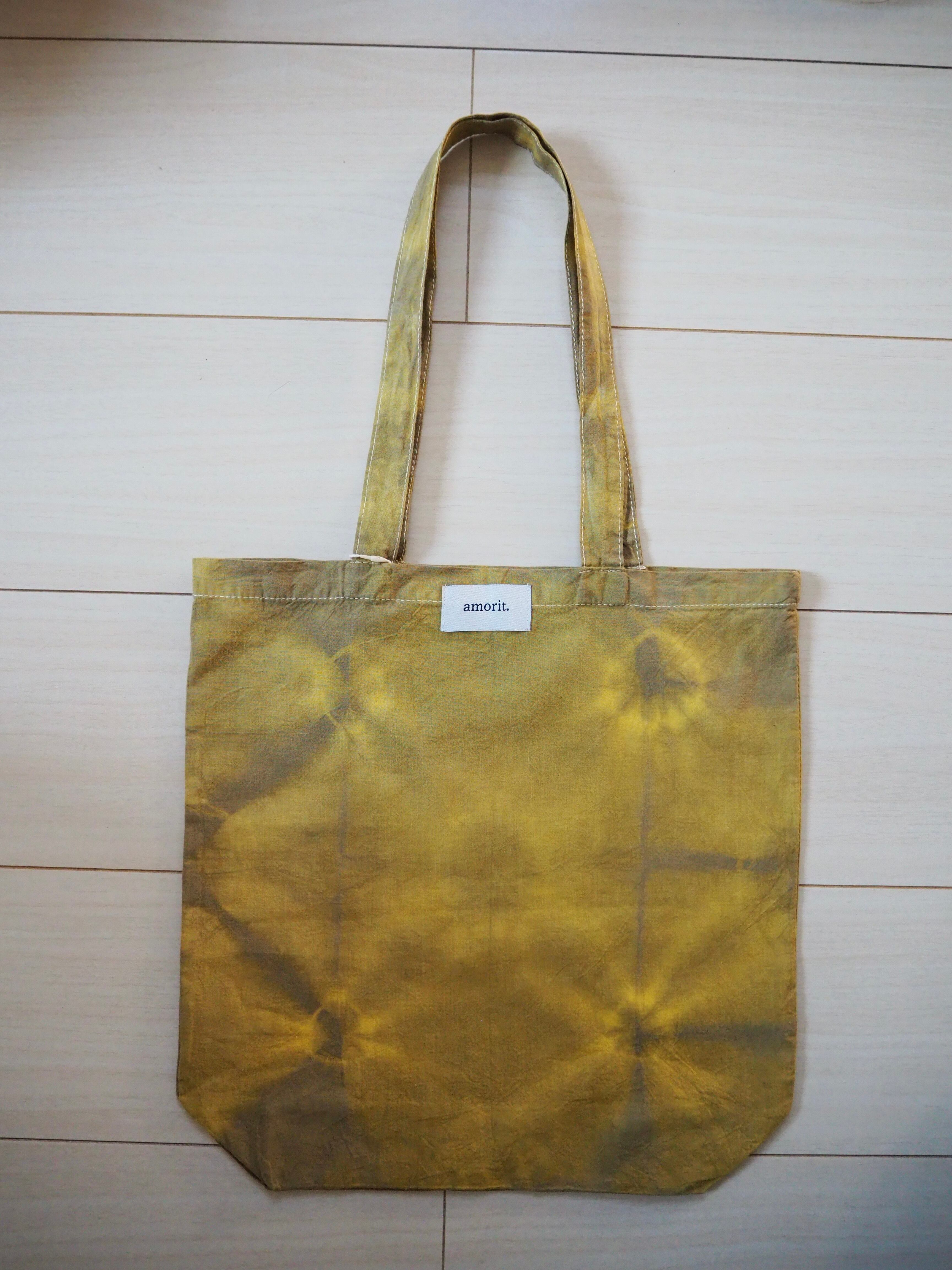 オーガニックコットンを使用し、風合い豊かな草木染めが施されたトートバッグです。