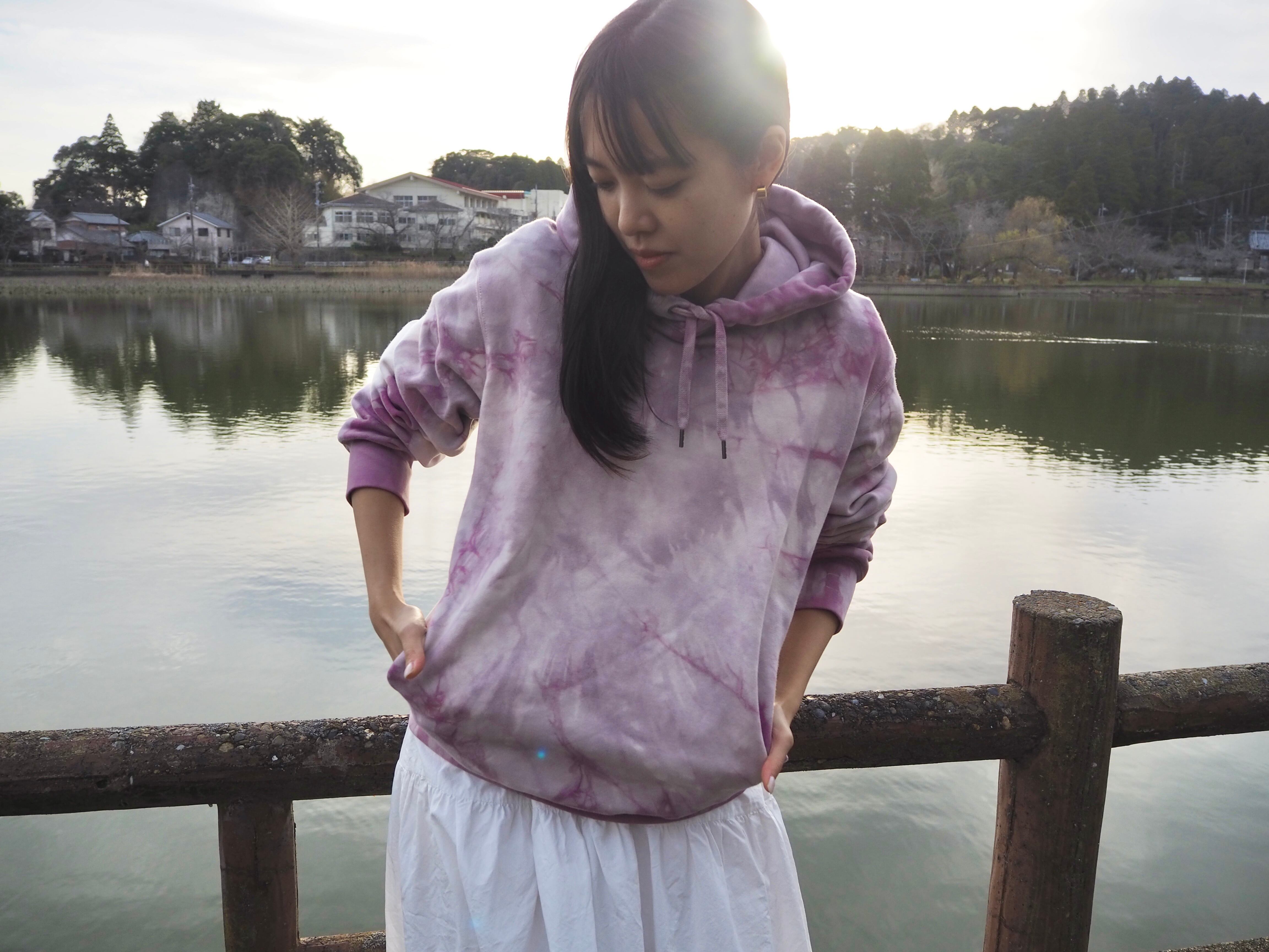 製品の状態:A(目立った傷や汚れなし)このパーカーは、デザイナーが国内の古着屋さんで購入し、洗濯をしたのち、コチニールで染めました。鉄媒染の色合いで、大人カジュアルに楽しめるカラーです。