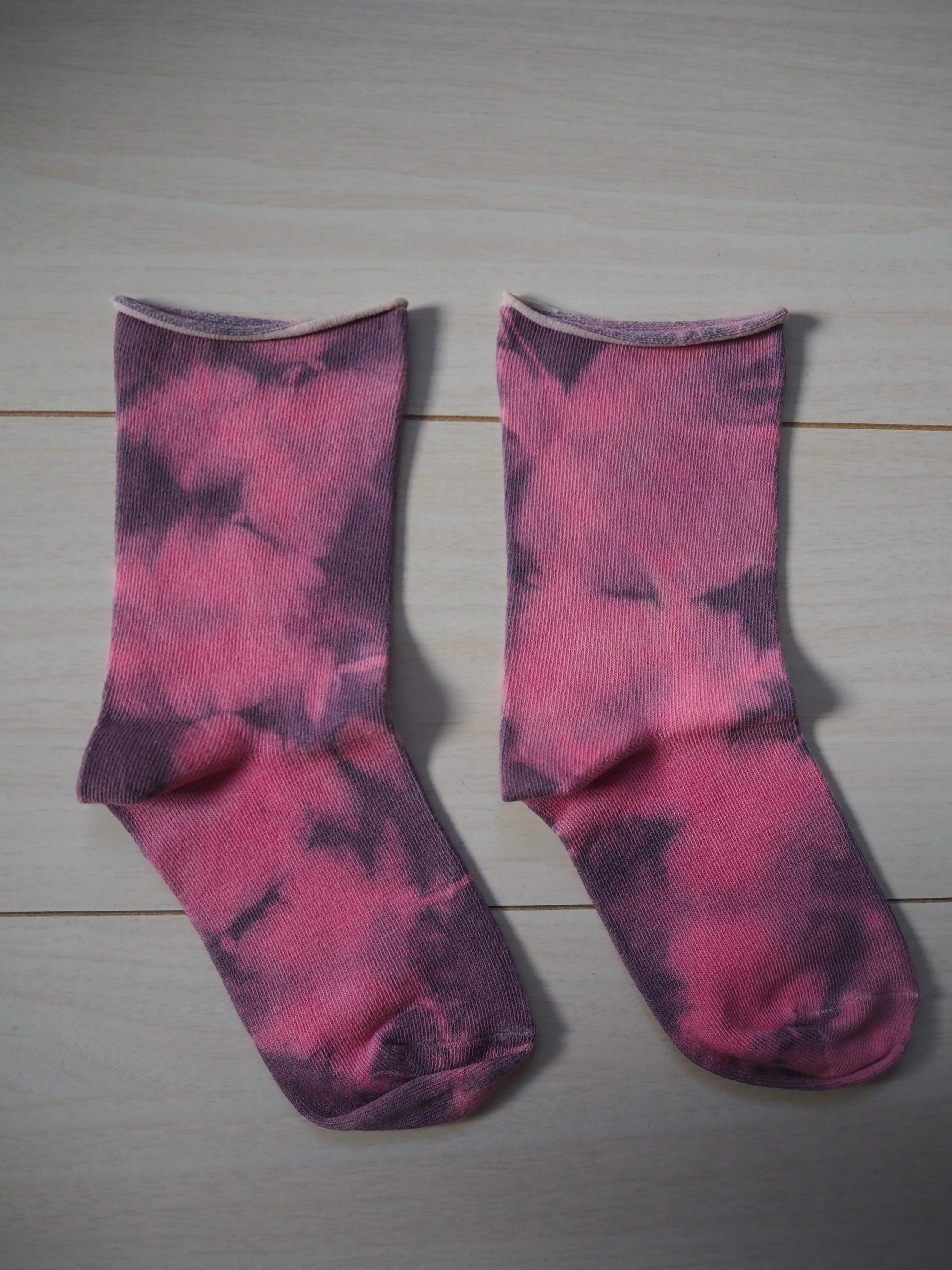 コチニール(アルミ、鉄媒染)染めオーガニックコットンロールソックス