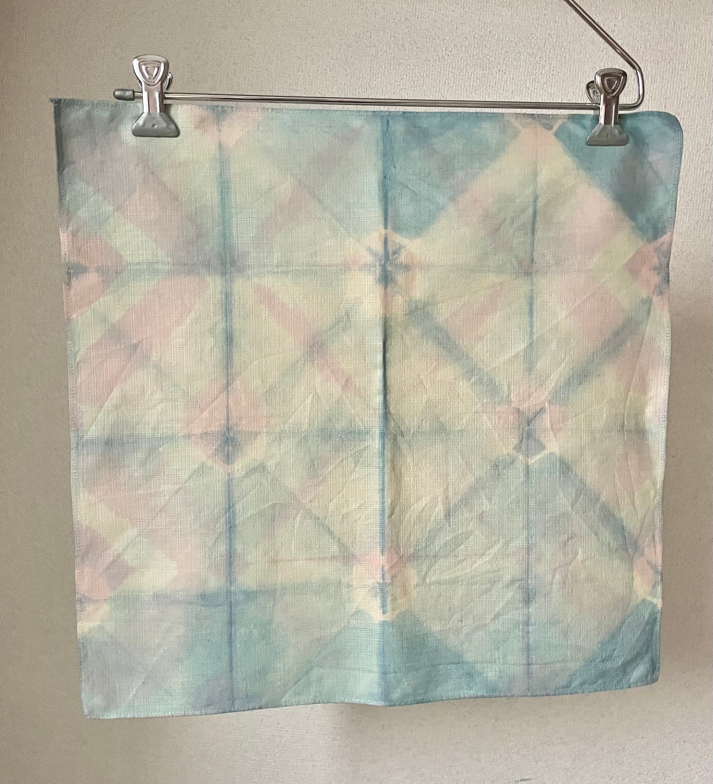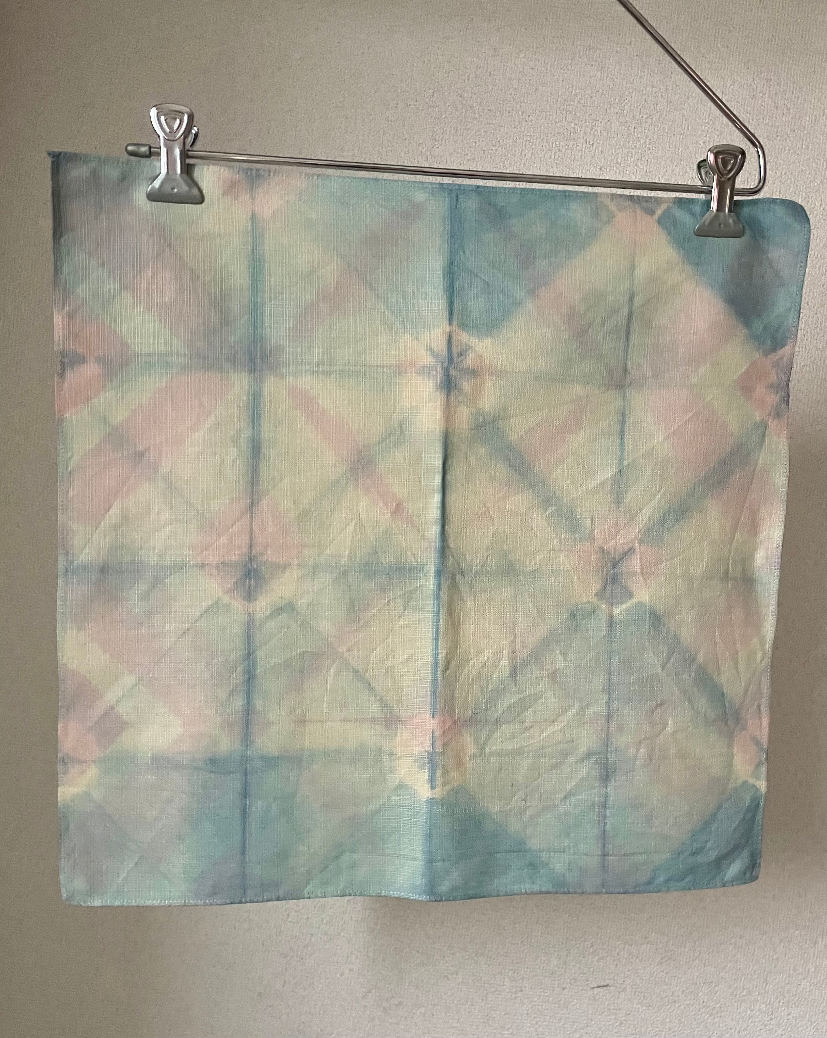 このミニ風呂敷は、板締めという伝統的な染色技術を用いて作られた一品です。この風呂敷は、独特な色合いが特徴です。お弁当や小物の持ち運び、ハンカチ代わりとして、また贈り物のラッピングなど、さまざまな用途でご利用いただけます。