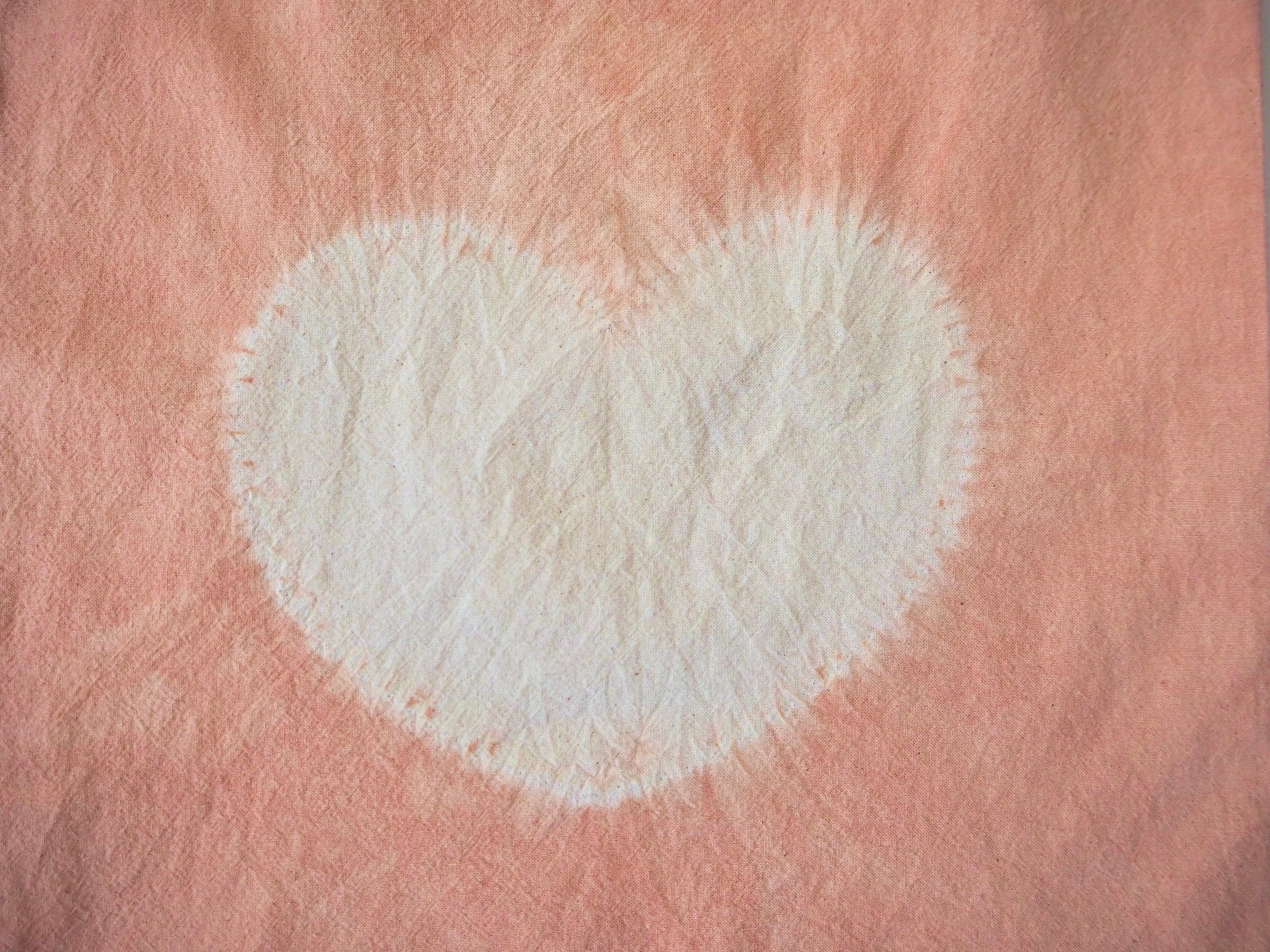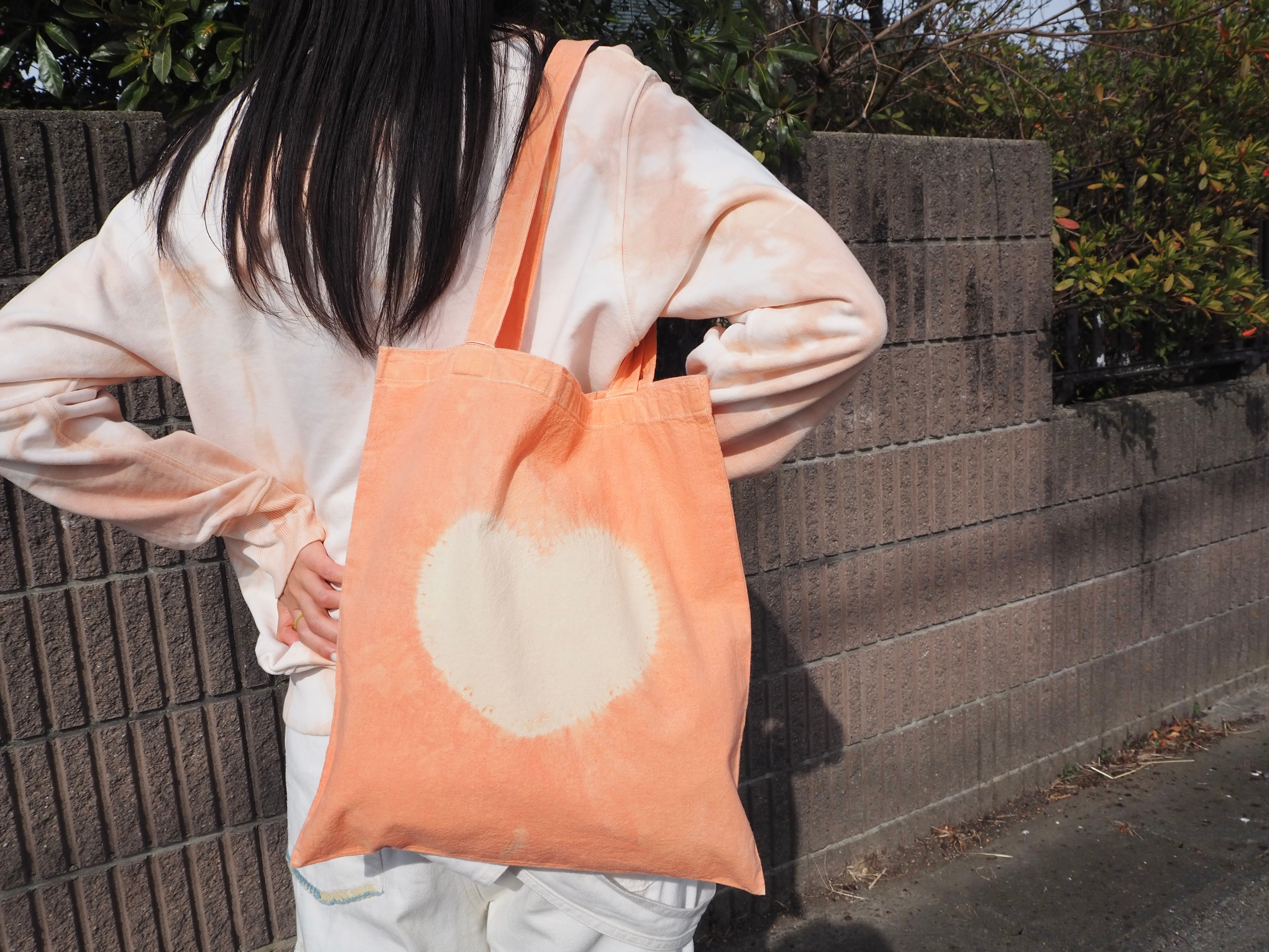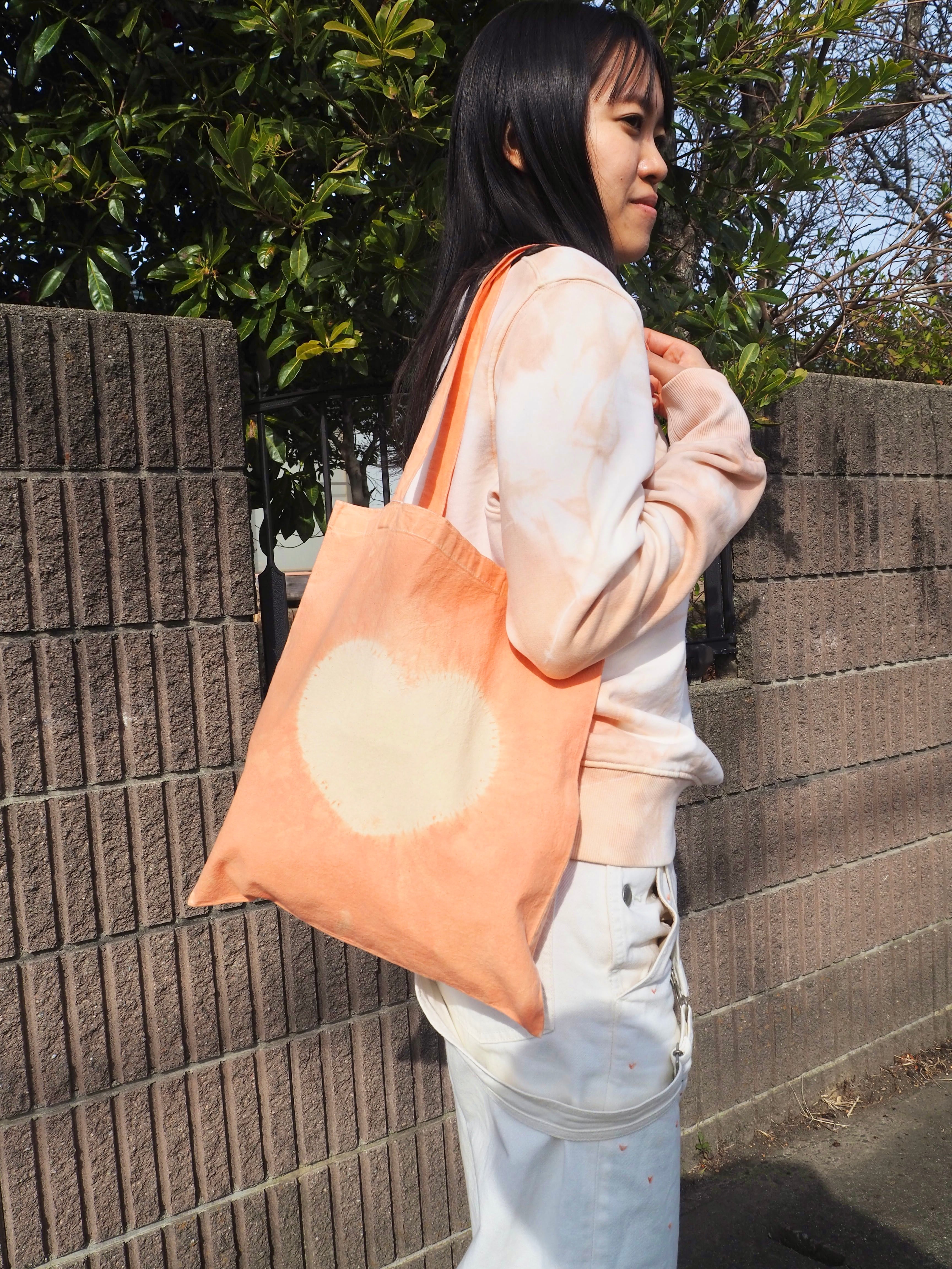かりやすとインド茜、ハート絞り染めのオーガニックコットントートバッグ(マチなし)