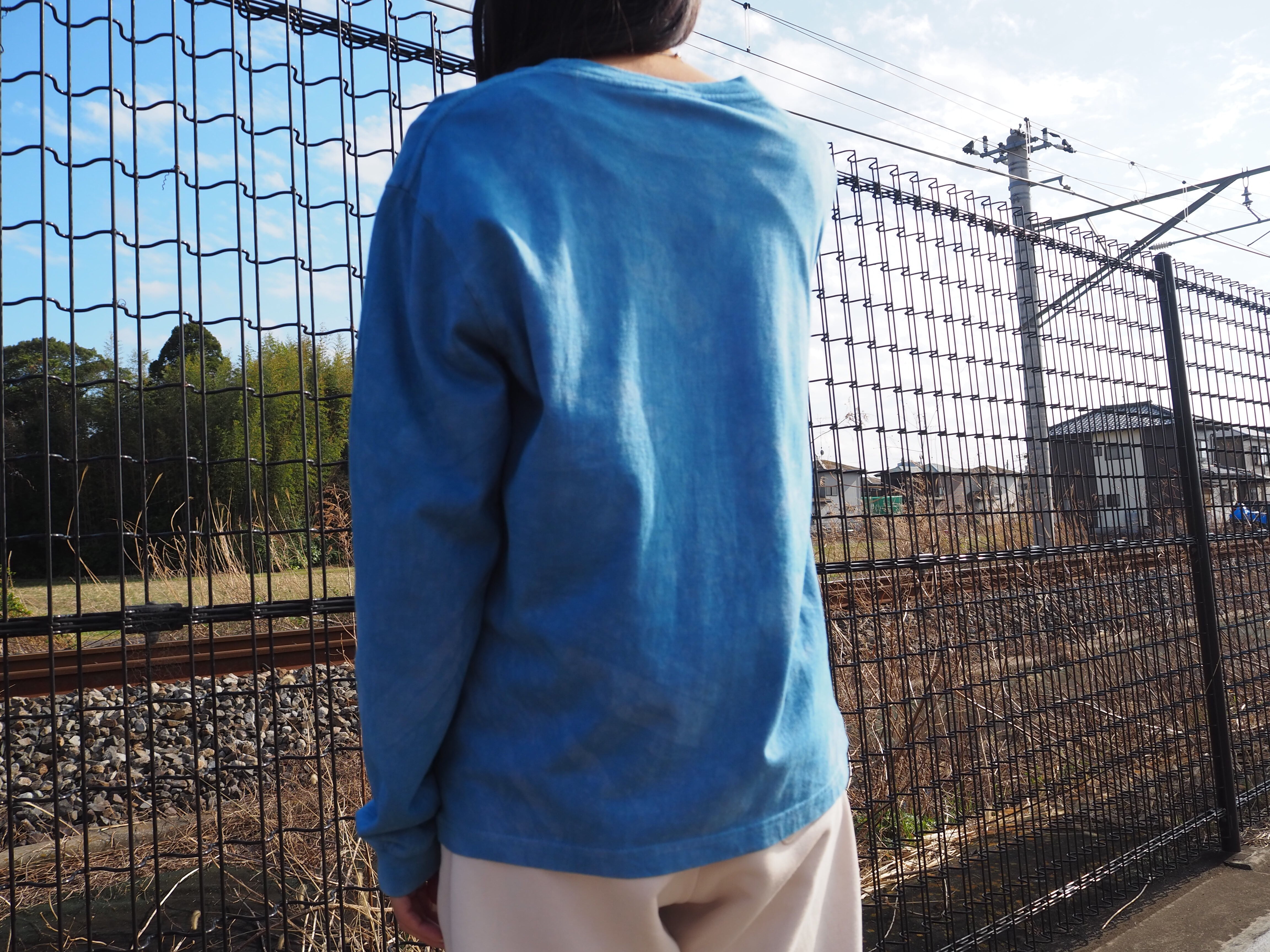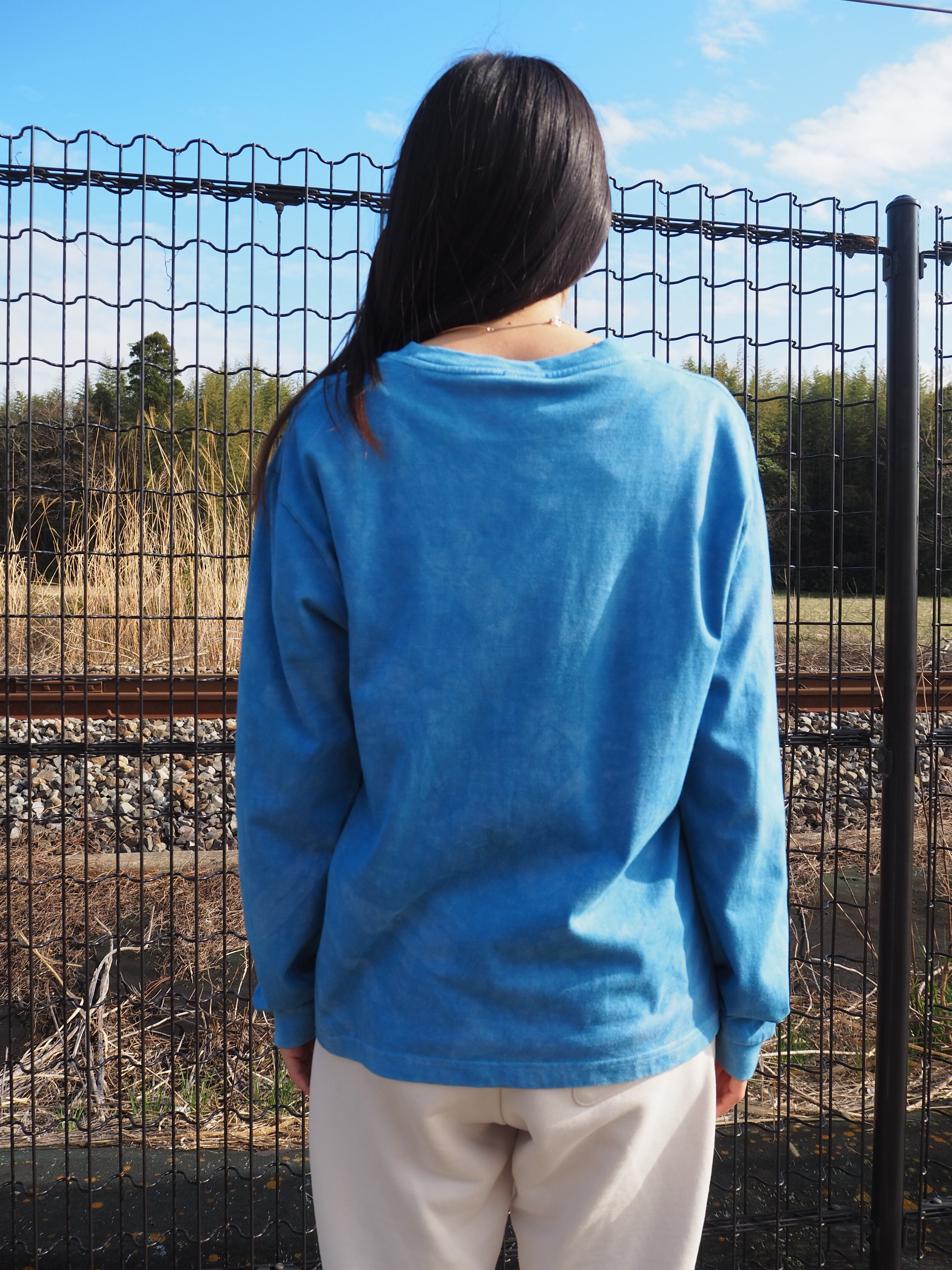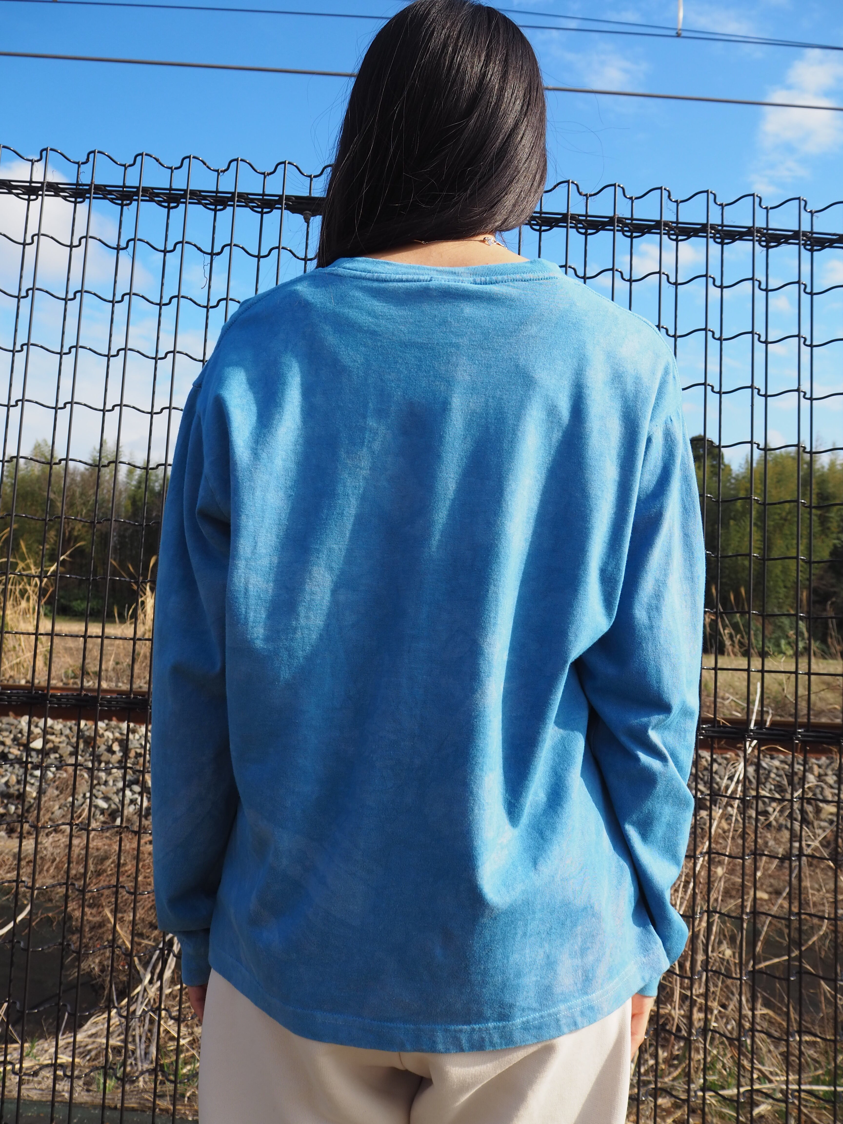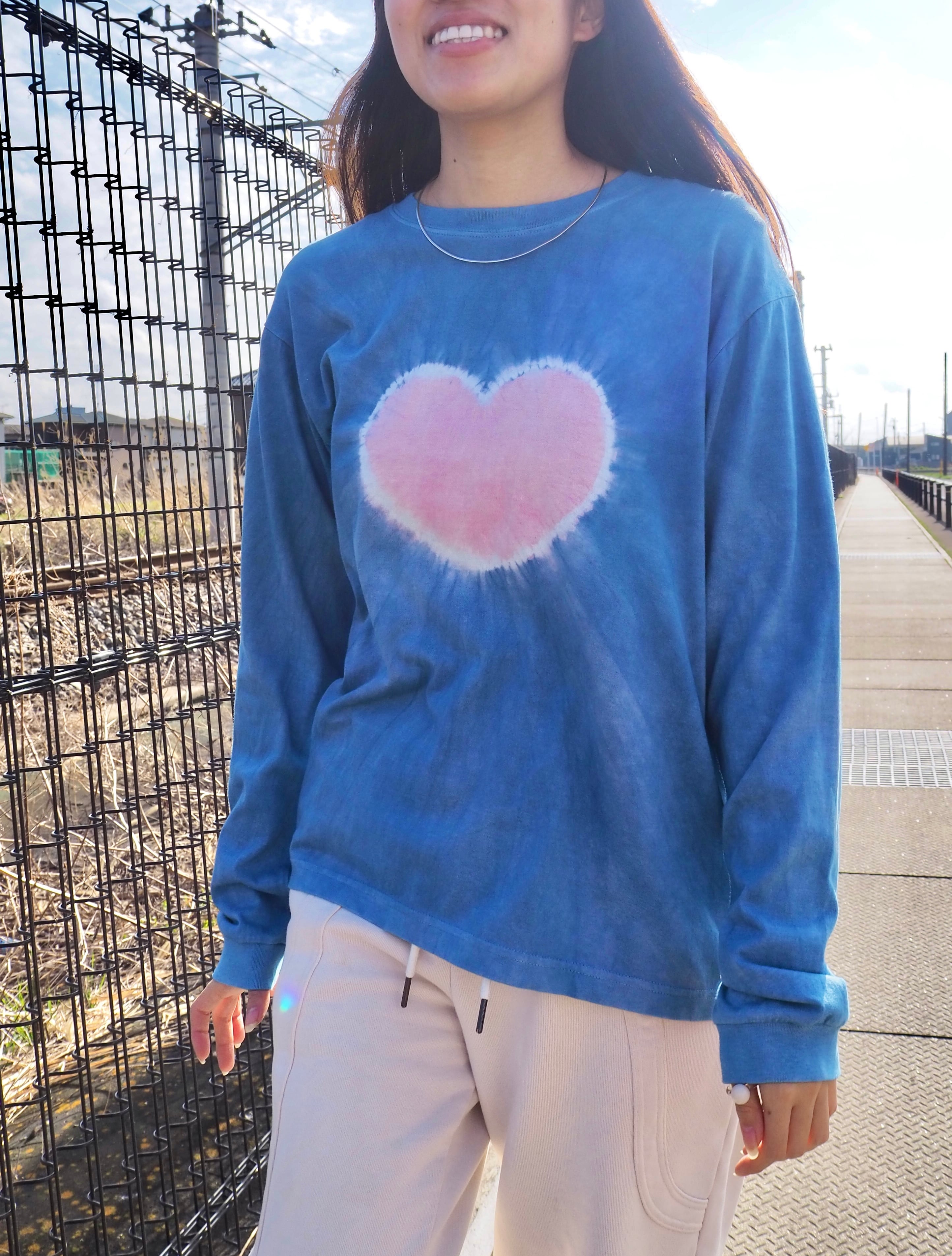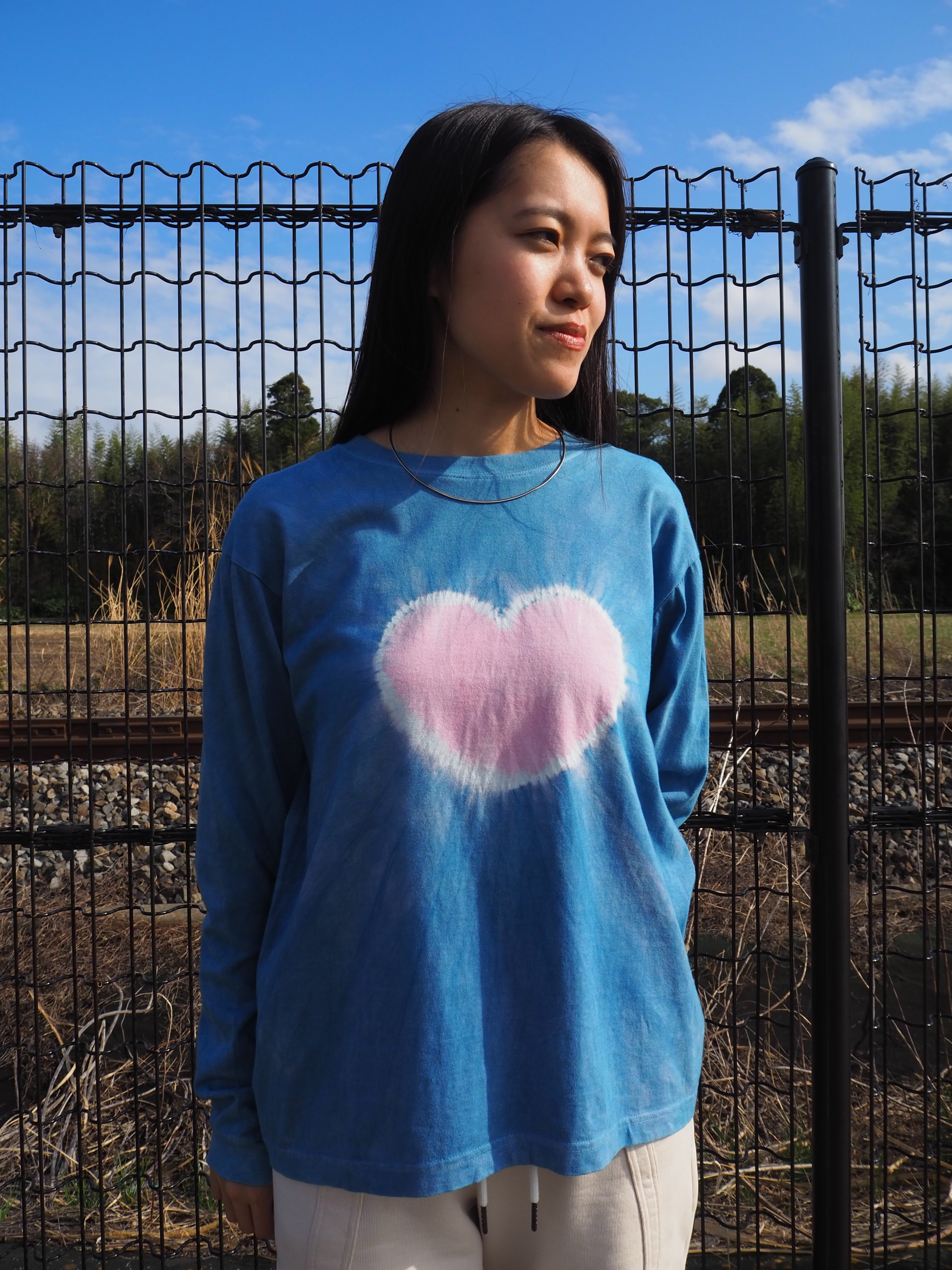 藍とコチニール染めハート絞りのオーガニックコットンロンT