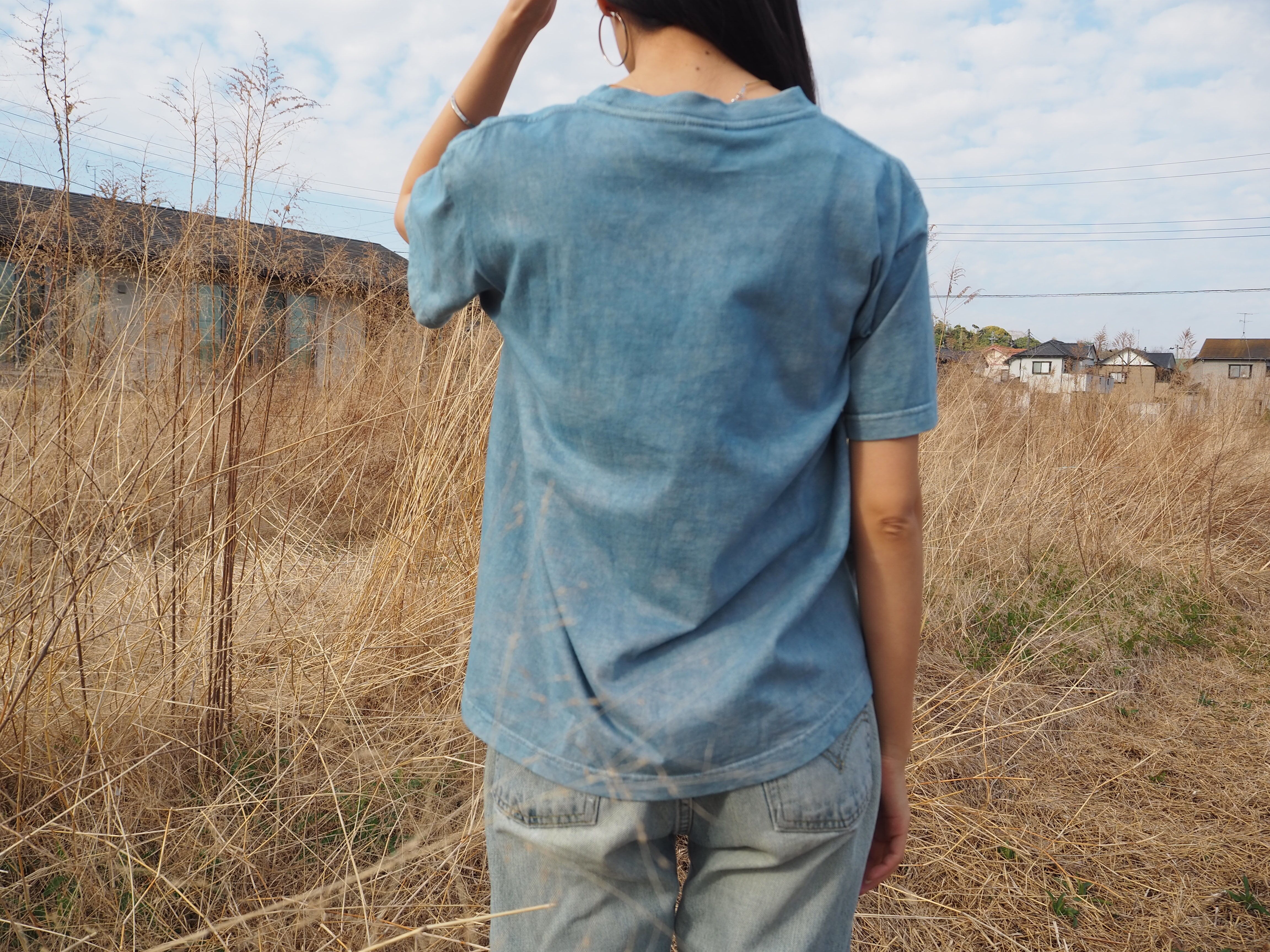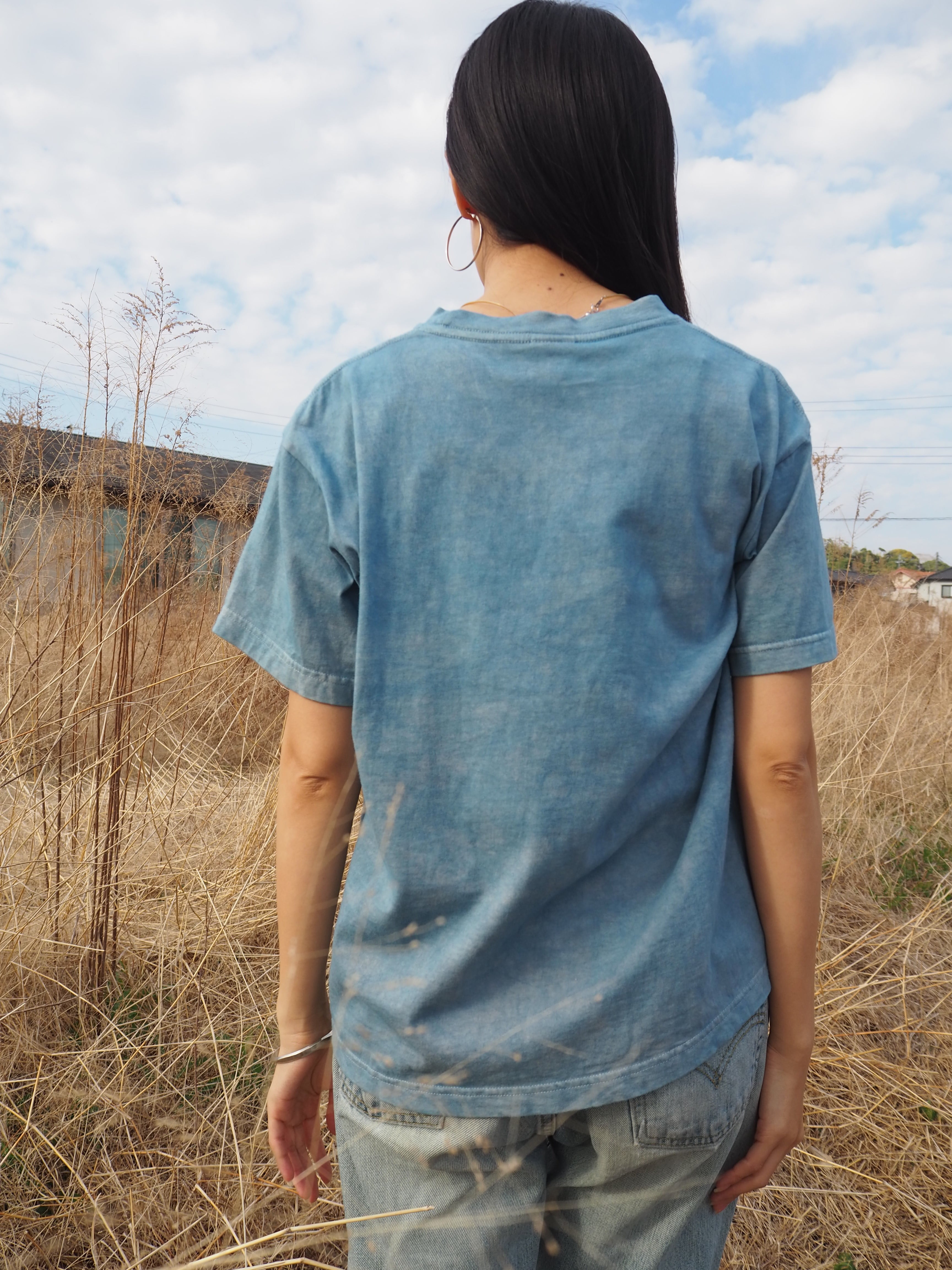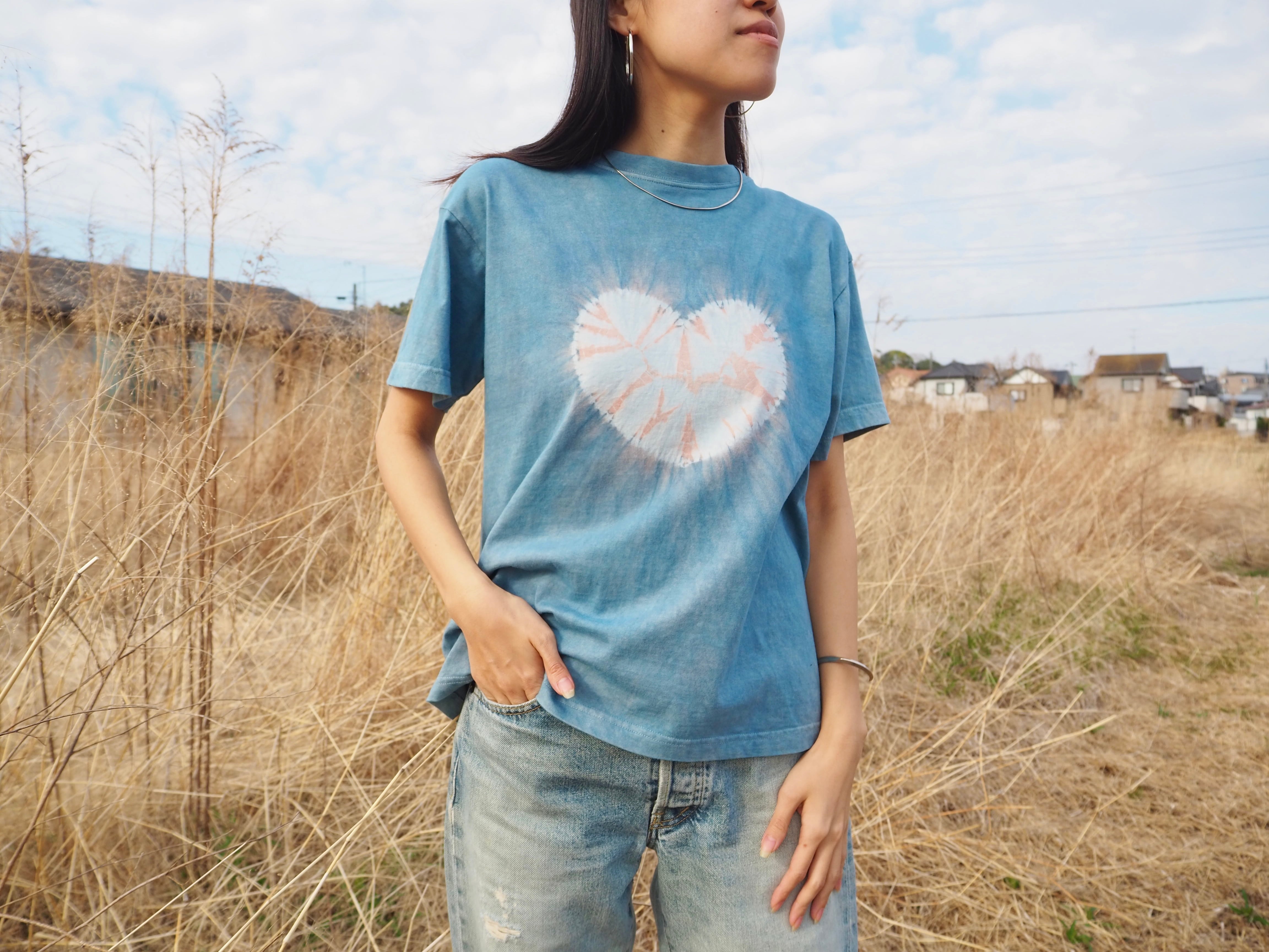 インド藍と西洋茜染めのハート絞りオーガニックコットンTシャツ【M】